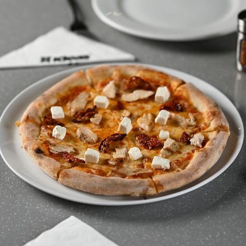 Grilled chicken, tomato sauce, feta cheese, roasted tomatoesand mozzarella