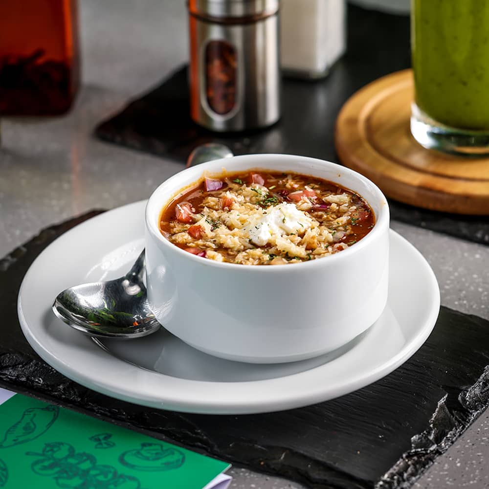 Tex-Mex beef Chili topped with tomatoes, onions, cheese and sour cream